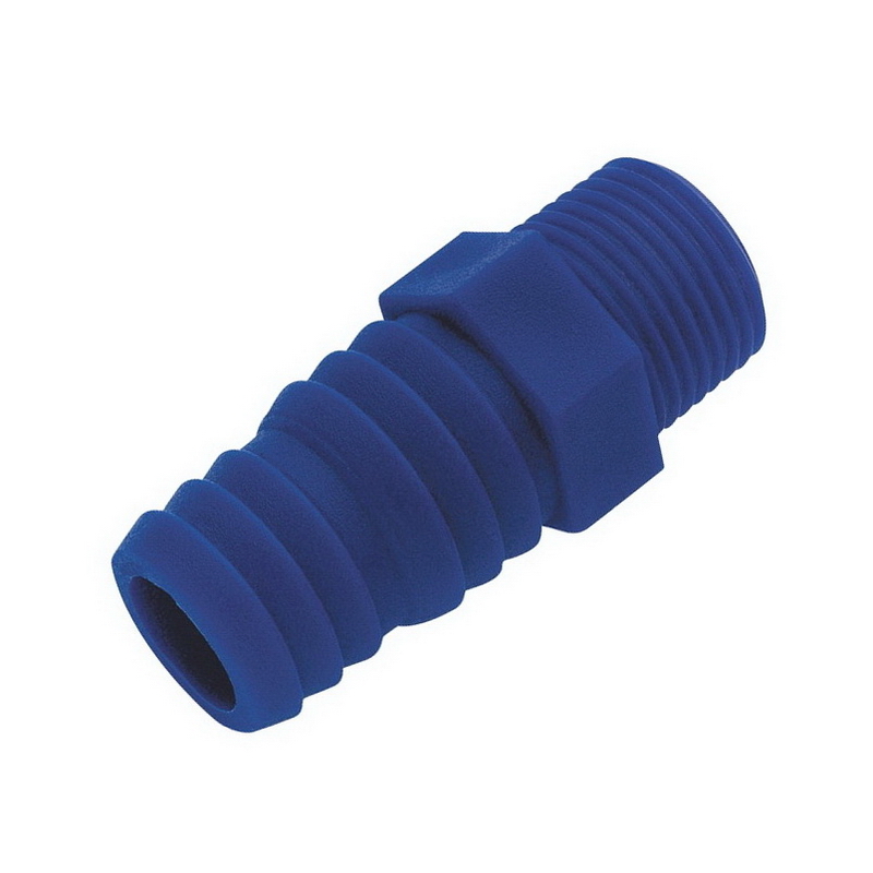 Conector recto para depósitos de água potável. Fabricado em plástico muito resistente. A rosca é de 3/8” e está preparado para tubagem de 17/19 ø mm de diâmetro.